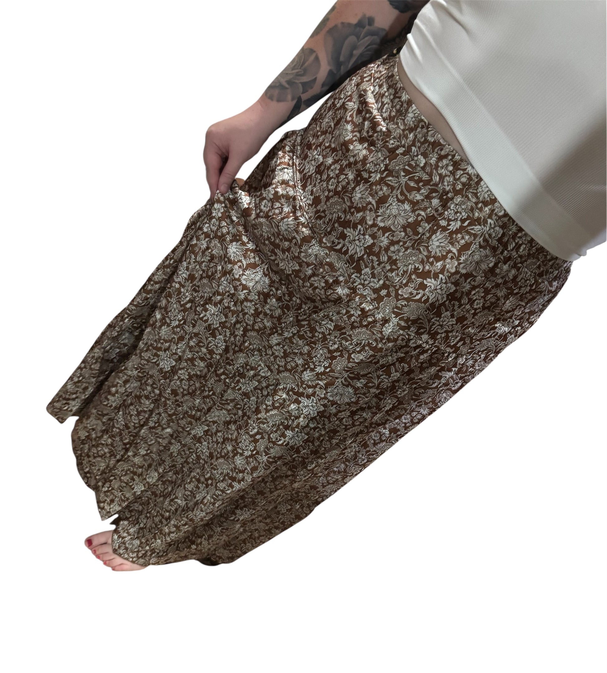 Brown western high wasted floral printed maxi skirt. Fabric is super soft and comfortable. Breathable yet not see through. Perfect for all seasons and a basic staple piece for your closet :)